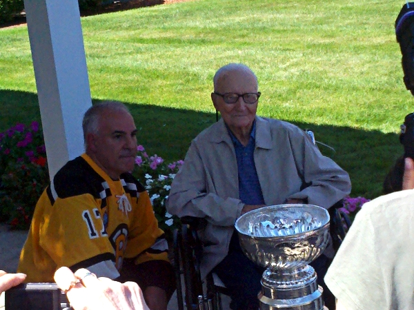 When Charlie heard about Desire "Dave" Caissie, a 104 year old resident at St. Patrick's Manor in Framingham, he snuck in a little side-trip to St. Pat's on Friday, September 2, 2011... and brought the Stanley Cup with him!