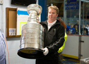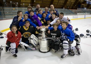 Coach Scott Penrod (right) and his FYHP Squirt ''C2'' Team pose with the Stanley Cup at Loring Arena in Framingham, October 15, 2011. (Photo courtesy of and Copyright ©2011 Wayne Dion)