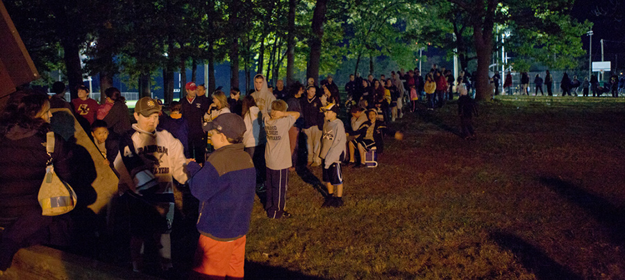 Kids from the Framingham Youth Hockey Program line up patiently outside Loring Arena, Saturday, October 15, 2011. (Photo courtesy of and Copyright ©2011 Wayne Dion)