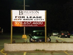 New sign advertising that Nobscot Shopping Center is now actively attempting to lease out vacant stores. (photo courtesy of Rick McKenna)