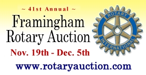 The 41st Annual Framingham Rotary Auction will be held Nov. 19th - Dec. 5th, 2012. All items will be auctioned on the internet. See website for details.