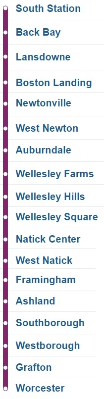 - On weekdays between 5 AM and 7 PM - all inbound and outbound trains will depart on-the-hour between Worcester and South Station in downtown Boston.