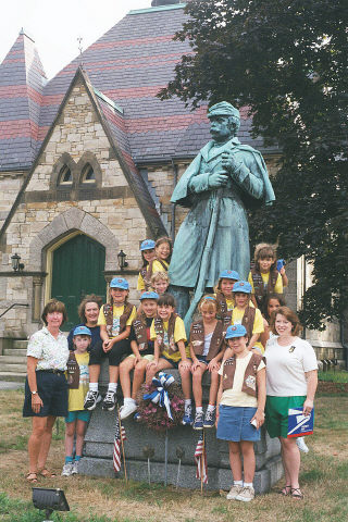 The statue has been adopted by Girl Scout Troop #2112 which spearheaded a preservation campaign.