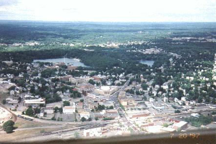 Also visable are Park St. Church, South Common, and the train station, (note commuter train leaving station). [ Intro ] [ Index ] Copyright ©1995-2004 framingham.com, all rights reserved. |