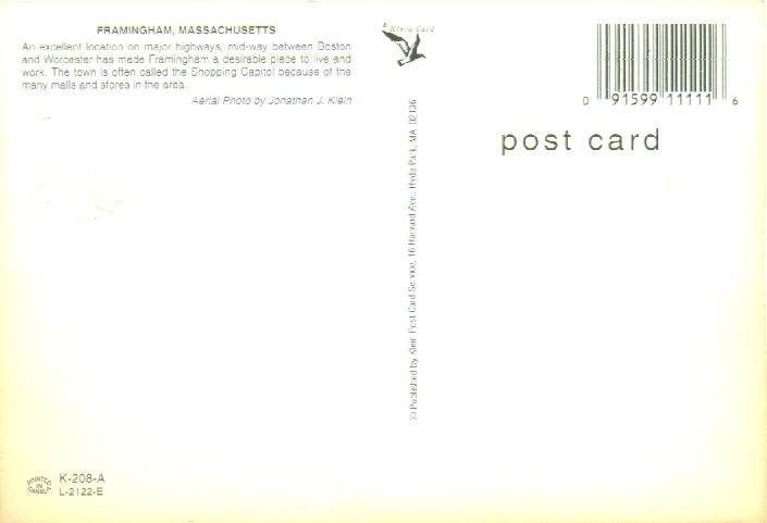 - Worcester Turnpike, Framingham Center, Massachusetts 1543 ( back )