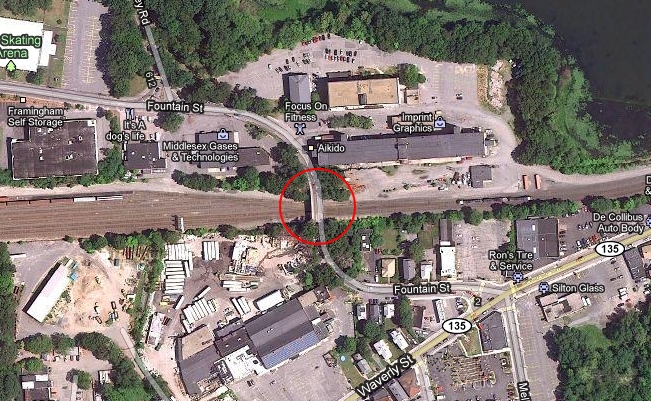 The Fountain St. bridge is frequently used to avoid Downtown Framingham and navigate to and from the Merloni Baseball Complex, Loring Arena, Keefe Tech, Fountain Street Galleries, (and other businesses located in the former Bancroft Cap factory), and the surrounding area. Map courtesy of Google Map, http://maps.google.com/
