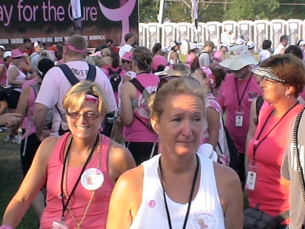 After a little motivational speech from Ronni, (with a few jokes about what's really "hot" thrown in), the crowd of walkers relaxes a bit, accepts the weather, and remembers why they're there.