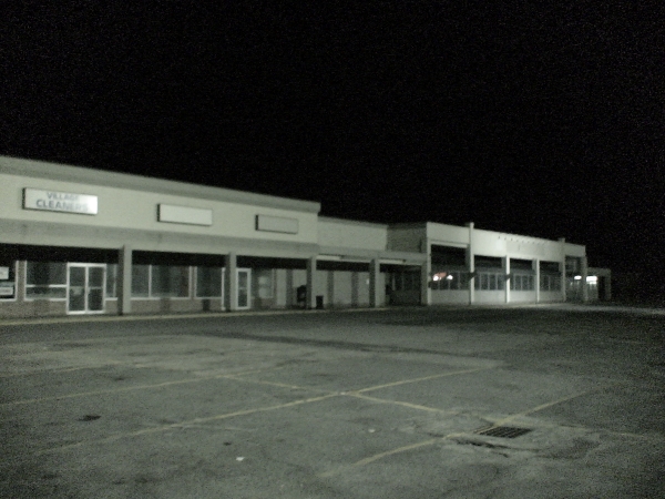 It really doesn't matter that this photo was taken late at night, even during business hours, the Nobscot Shopping Center appears to be a ghost town, with it's anchor store and half the other retail spaces vacant and the parking lot in disrepair. (July 28, 2011 photo)