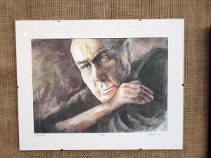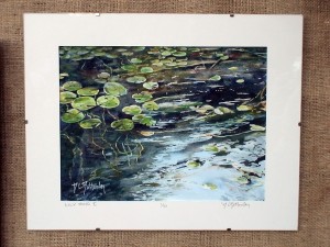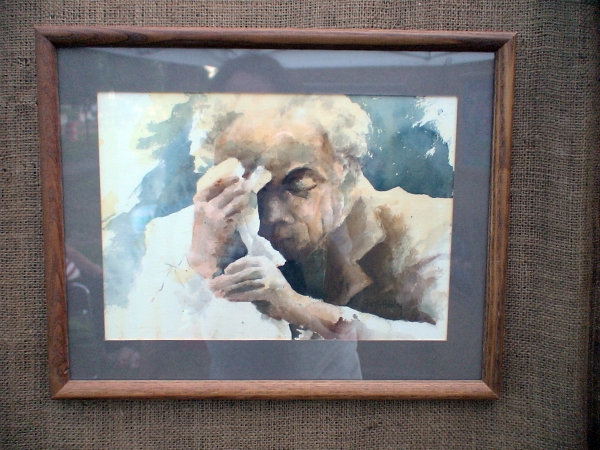 Deborah Bottomley, a former Framingham resident who now lives in Milford was painting and displaying her work throughout the night. Bottomley who works as an estimator in a fabrics related business has been a member of the guild for approximately 10 years. Deboarah works primarily in watercolor, but also does murals and trompe l'oeil and faux finishing treatments in oil and acrylics and sometimes works in charcoal.