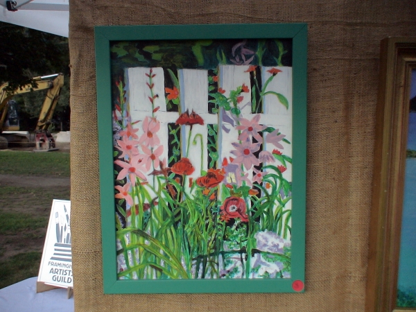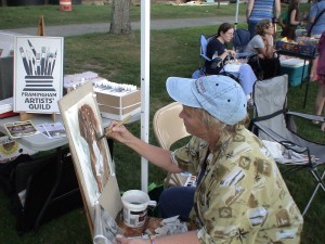 The Framingham Artist Guild tent is a regular attraction at the concerts, and the group featured two member artists during the 3 OF A KIND concert.