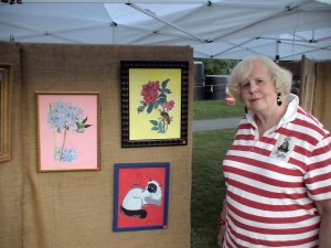 Also on hand was Merrillee Torres, a Framingham Artist Guild member for 4-5 years, who was displaying her whimsical, colorful acrylic paintings. Torres lives in South Natick and works as a volunteer at the Natick Senior Center and the American Cancer Society.