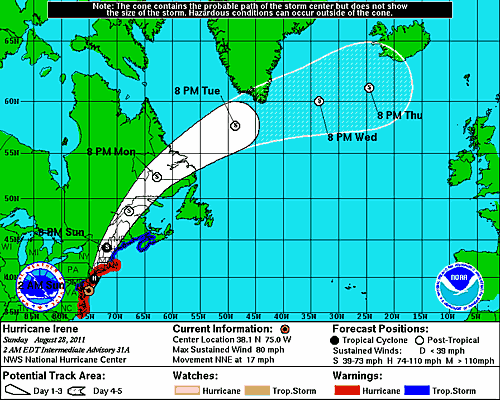 Please use the comment section below to add other resources, offer storm readiness tips, or report Hurricane Irene related info.