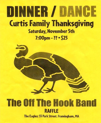 This year the Dinner/Dance to benefit the Curtis Family Thanksgiving will be held Saturday, November 5th, 2011 starting at 7:00p.m. at The Eagles, 55 Park Street, Framingham, MA.
