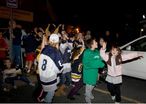 Kids from the Framingham Youth Hockey Program line up patiently outside Loring Arena, Saturday, October 15, 2011. (Photo courtesy of and Copyright ©2011 Wayne Dion)