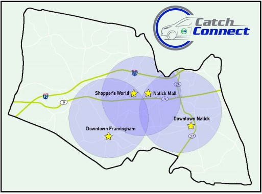 FRAMINGHAM, MA -- Today the Metrowest Regional Transit Authority, (MWRTA) expanded its app based, "Catch Connect" MicroTransit service to operate on Saturdays and Sundays in areas within Downtown Framingham and Natick, and the Golden Triangle shopping area, (Natick Mall, Shoppers World, Walmart, and other nearby locations).