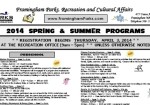 Framingham, MA – The Town of Framingham Parks & Recreation Department has published its list of 2014 SPRING & SUMMER PROGRAMS. Registration for the popular Summer Recreation Centers, (for children Ages 5 – 13 yrs), begins Thursday, April 10th at the Academy Building in Cushing Memorial Park from 5:30-6:30pm, (then at the Parks & Recreation Office, during… [read more].