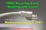 FRAMINGHAM, MA — Framingham’s Department of Public Works will host Electronics Recycling Day, Wednesday, June 16, at the Recycling Drop-Off Center, 255 Mount Wayte Avenue, 12-8 p.m. Residents can bring any type of electronic device to dispose of as long as it has a power cord or power button…. [read more].