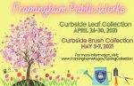 FRAMINGHAM, MA — The Framingham Department of Public Works will begin its spring curbside brush and leaf collection at the end of April. Leaves will be collected first, April 26-30, and brush will be picked up May 3-7 on residents’ regularly scheduled trash/recycling collection days during those weeks…. [read more].