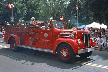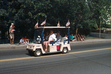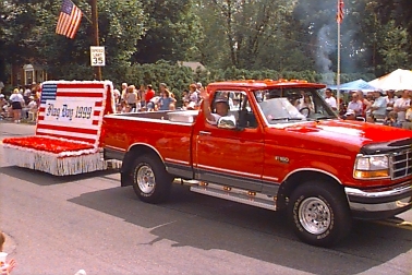 Gene & Betty Matarazzo's truck pulling the Flag Day 1999 parade float.