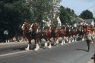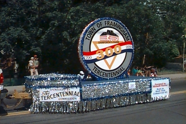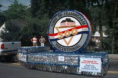 Tercentennial Commision float featuring logo designed by Richard Thorne.