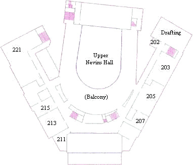 203 - Engineering Dept. 205 - Accounting Department 207 - Chief Financial Officer 211 - Conservation. 213/215 - Dept. of Public Works 221 - Board of Health UPPER NEVINS HALL, Balcony Drafting Room |